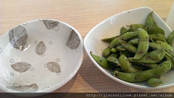在等餐點時間,店家請吃的毛豆