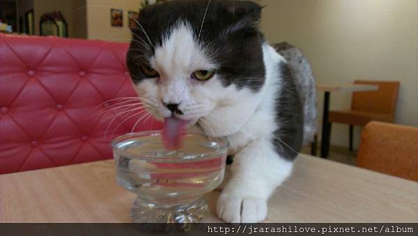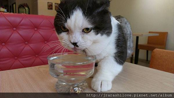 桌上有放一些水杯,喵喵們都會在桌上喝水