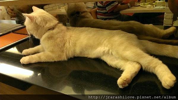 店員告知果果很喜歡起司或奶製品的味道,所以都會偷偷舔客人的食物