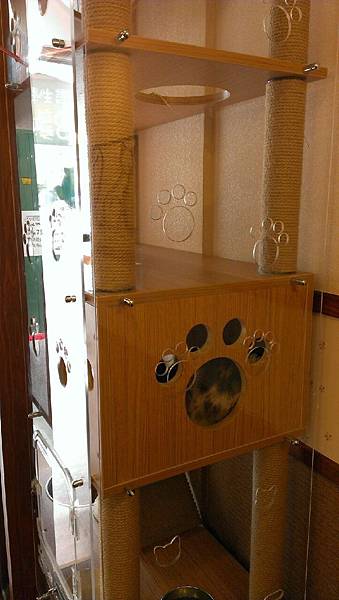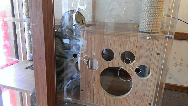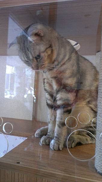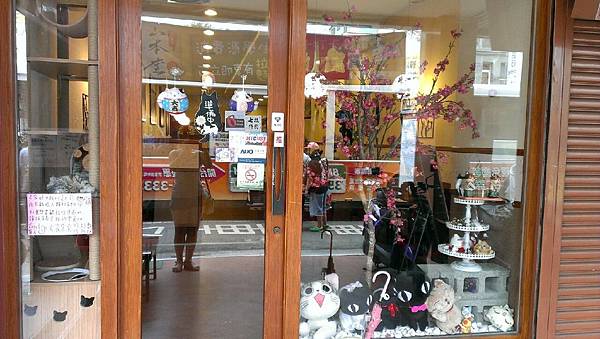 由於提前到達店家還沒開始營業,只能隔玻璃看貓