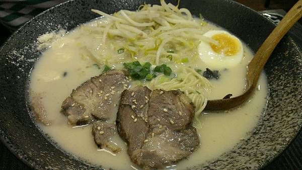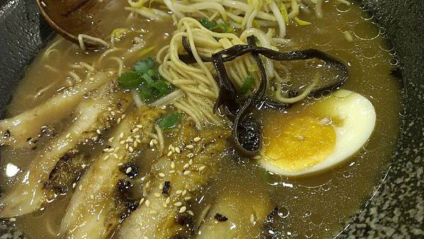 配料有叉燒肉、黑木耳、豆芽菜、海苔、溫泉蛋等