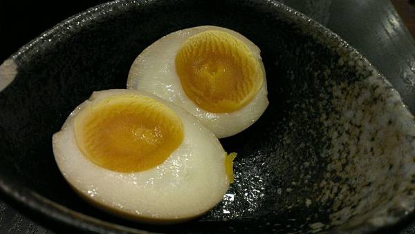 這裡的半熟蛋,是濕潤的蛋黃,且有著微香的酒味,並不是乾乾型,搭配QQ的蛋白,超讚的!!