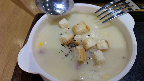麵包沾上玉米濃湯吃,也超好吃。