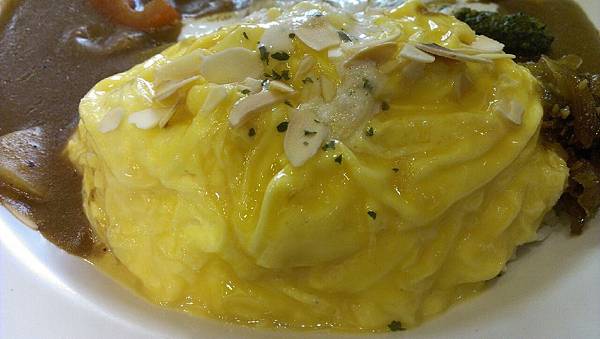 然而蛋包飯配放杏仁片的組合也是第一次看到