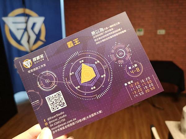 這次我們玩的是『霸王』關卡,遊戲人數:4~8人,遊戲時間:60分鐘+20分鐘解說,詳細內容、價位、關卡介紹可到官網連結查詢(Escer異世客)